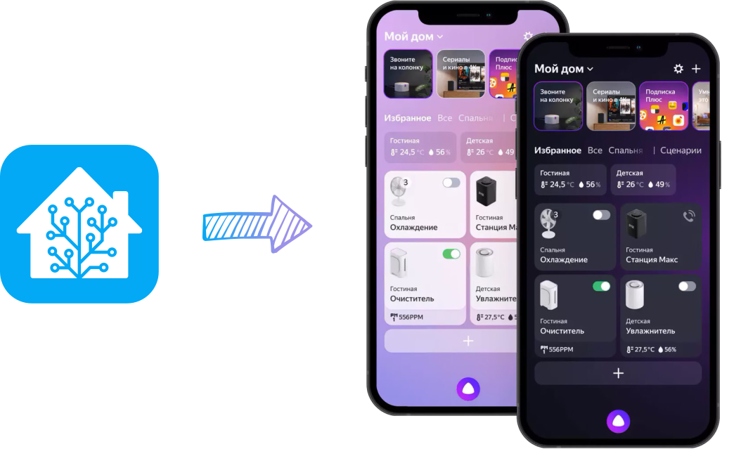 Компонент позволяет добавить устройства из Home Assistant в платформу умного дома Яндекса и управлять ими с любого устройства с Алисой: